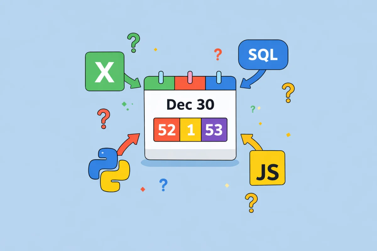 12月30日が何週かを4つのツールに聞くと、4つ違う答えが返ることがあります。なぜそうなるのか、そしてツール同士を一致させる方法を解説します。